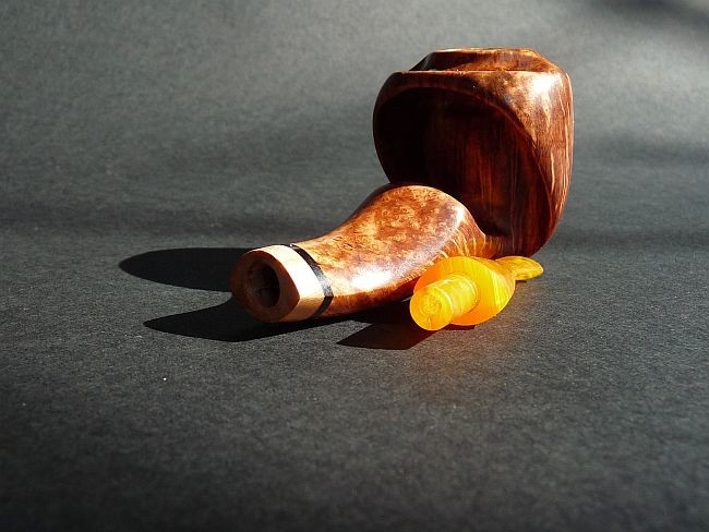 Freehand pipe Plateau-Bruyère extra Spain ,mouthpiece handcut lucite – application – black Morta – Mapplewood , no filter ,pipe cleaner test- Yes.