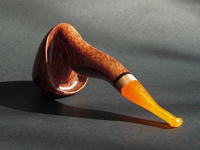 Freihand Pfeife aus Plateau-Bruyère extra trocken Spanien, Mundstück handgenschnitten aus Acryl – Applikation – schwarze Morta-Damastahorn,ohne Filter, Pfeifen Reiniger Test – Ja.