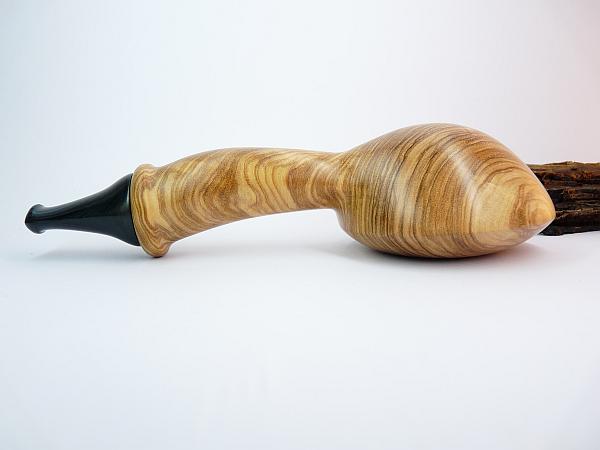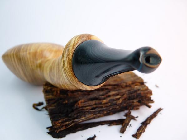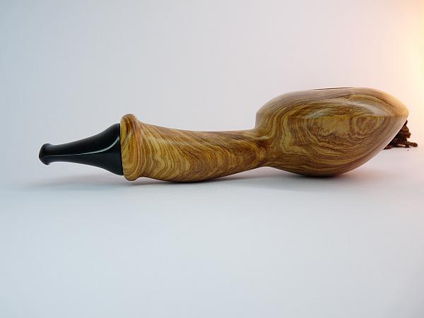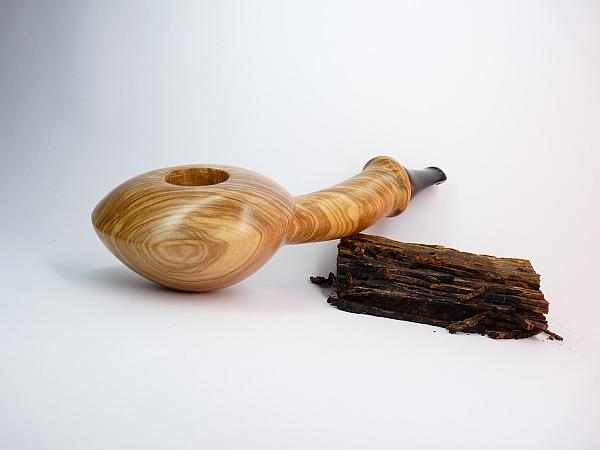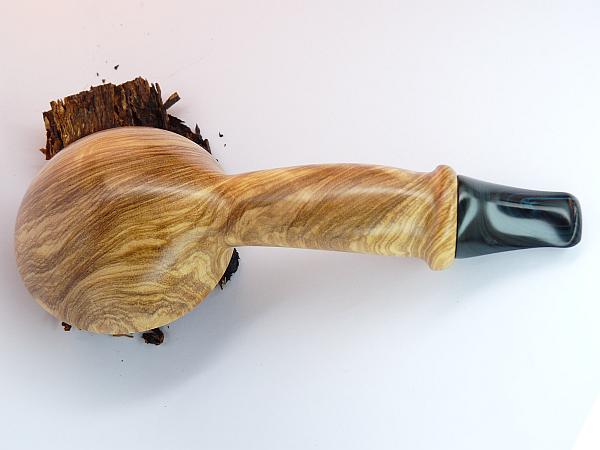 Details: FreehandĀ olive wood pipe. Ebonite mouthpiece Cumberland midnight -blue.