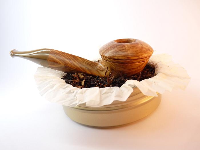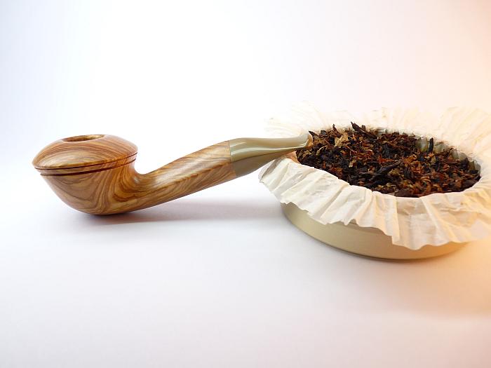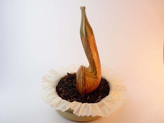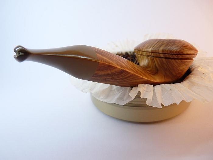 Freihand Olivenholz Pfeife mi Mundstuck aus Ebonite Sand gelb.