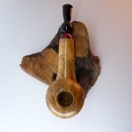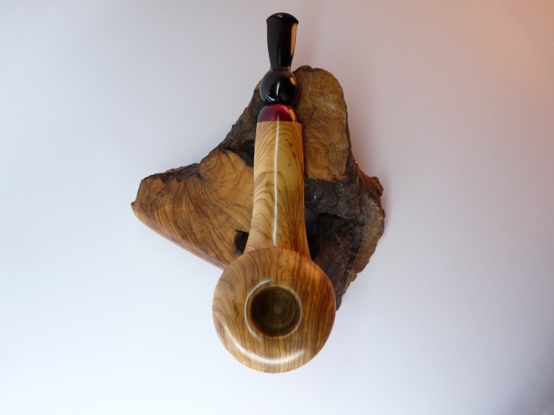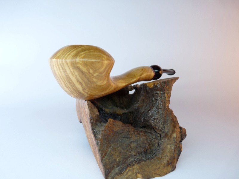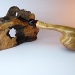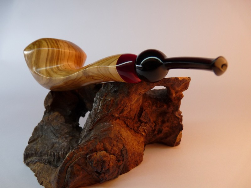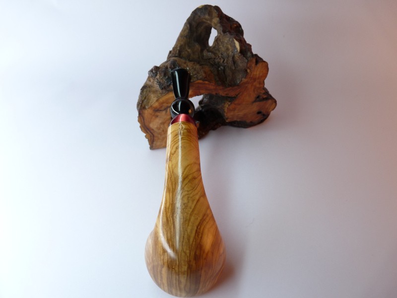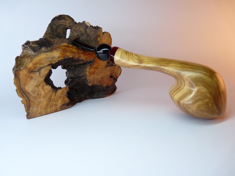 Details:Freehand pipe ,olive wood 600 yers old, with lucite ring, mouthpiece handcut in ebonite black ,pipe cleaner test – yes